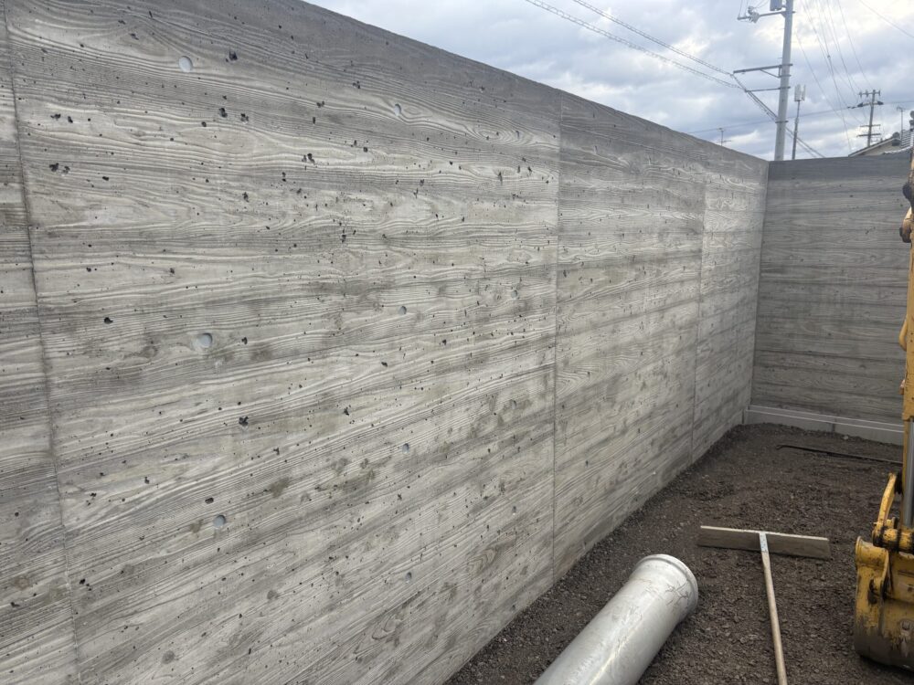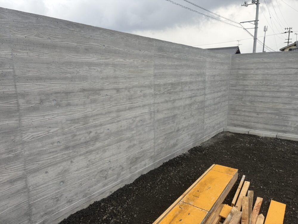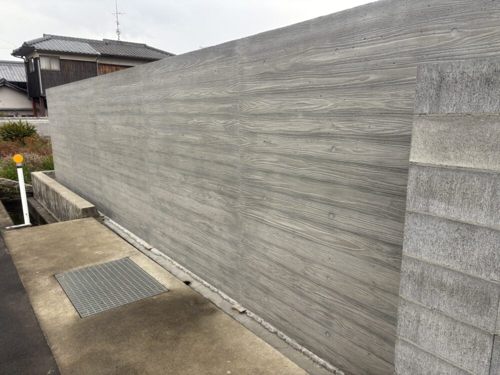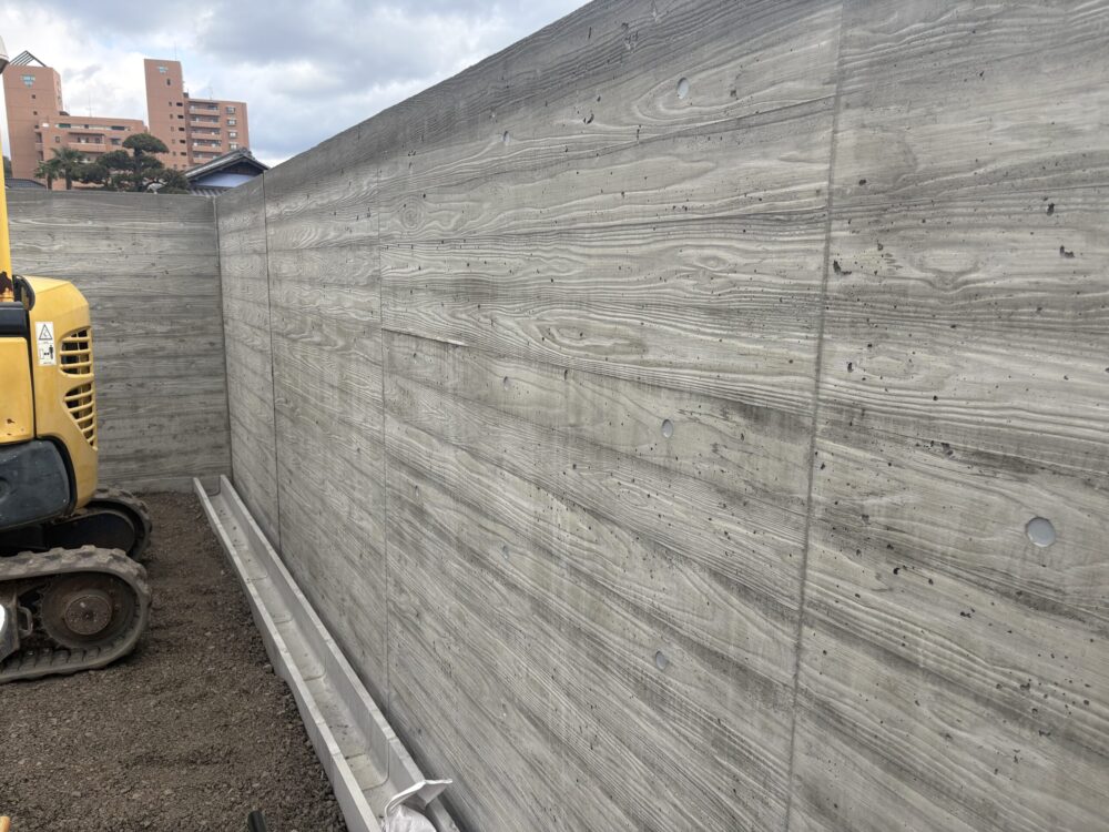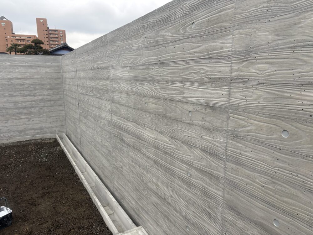 今回は杉板型枠を使った浮造りコンクリート擁壁の仕上げです